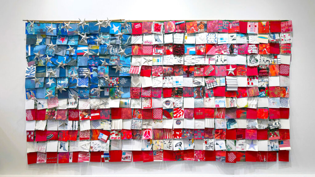 We are bringing people together in an art-making workshop to express ourselves as Americans. Through conversation, collage, painting, drawing and other art forms, we’ll begin to create a collaborative work of art inspired by the American flag. This work in progress will display in Shift Gallery’s window and continue to evolve during the month of October, 2025 in conjunction with Sue Springer’s “This is What Democracy Looks Like” exhibit.